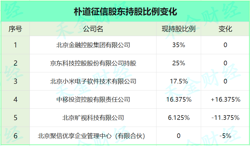 伴随着新股东入场,朴道征信股权结构也发生变化——